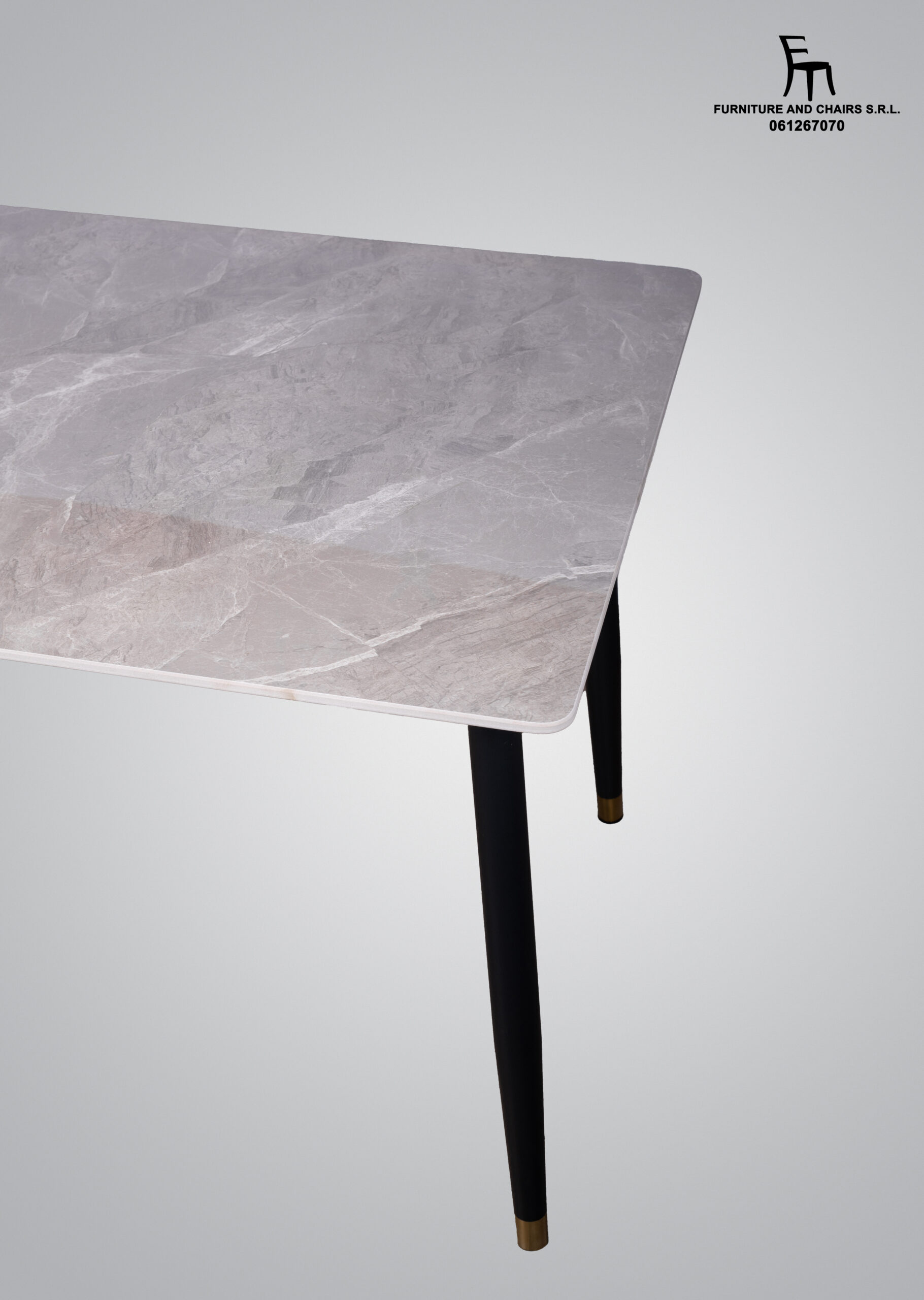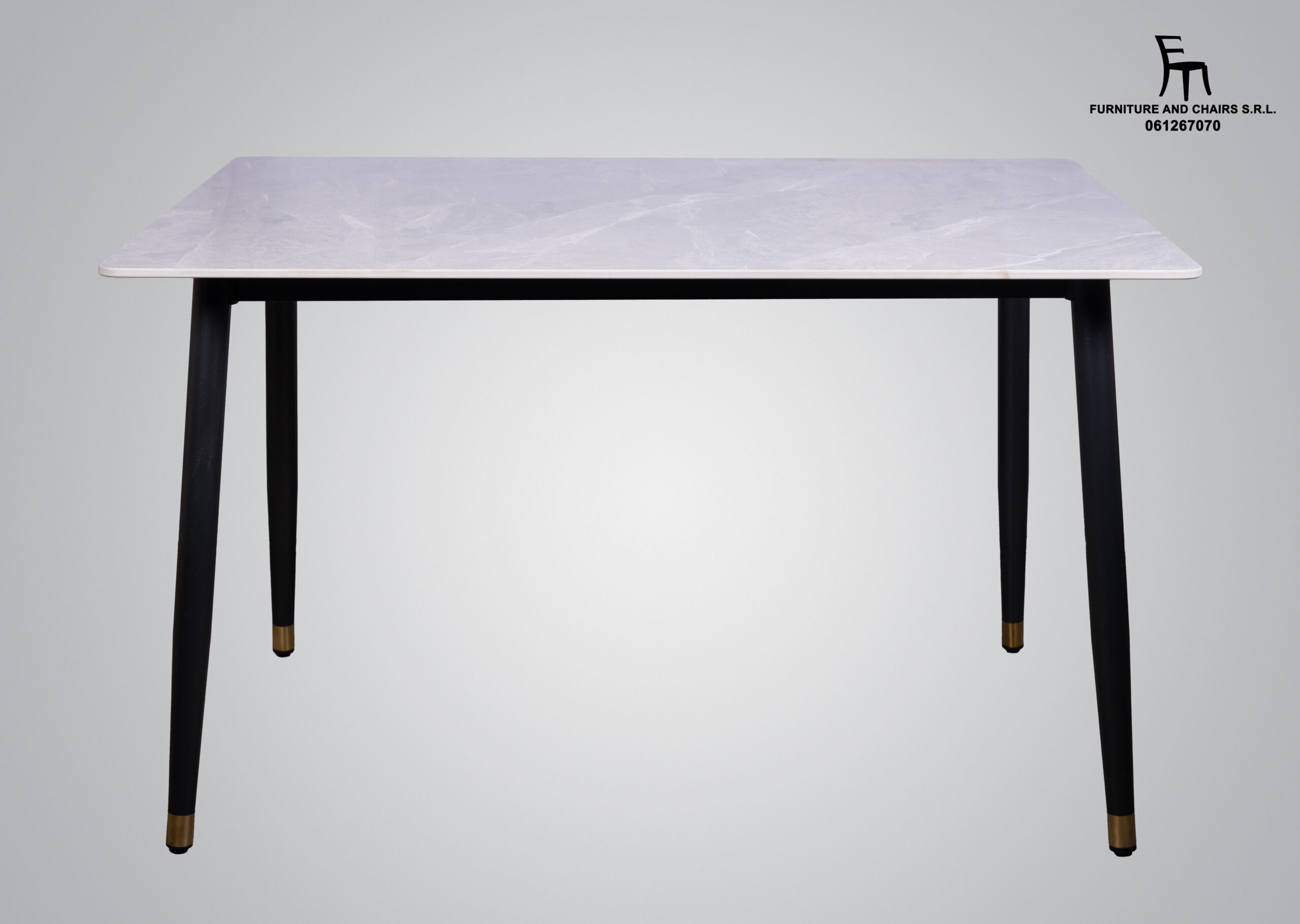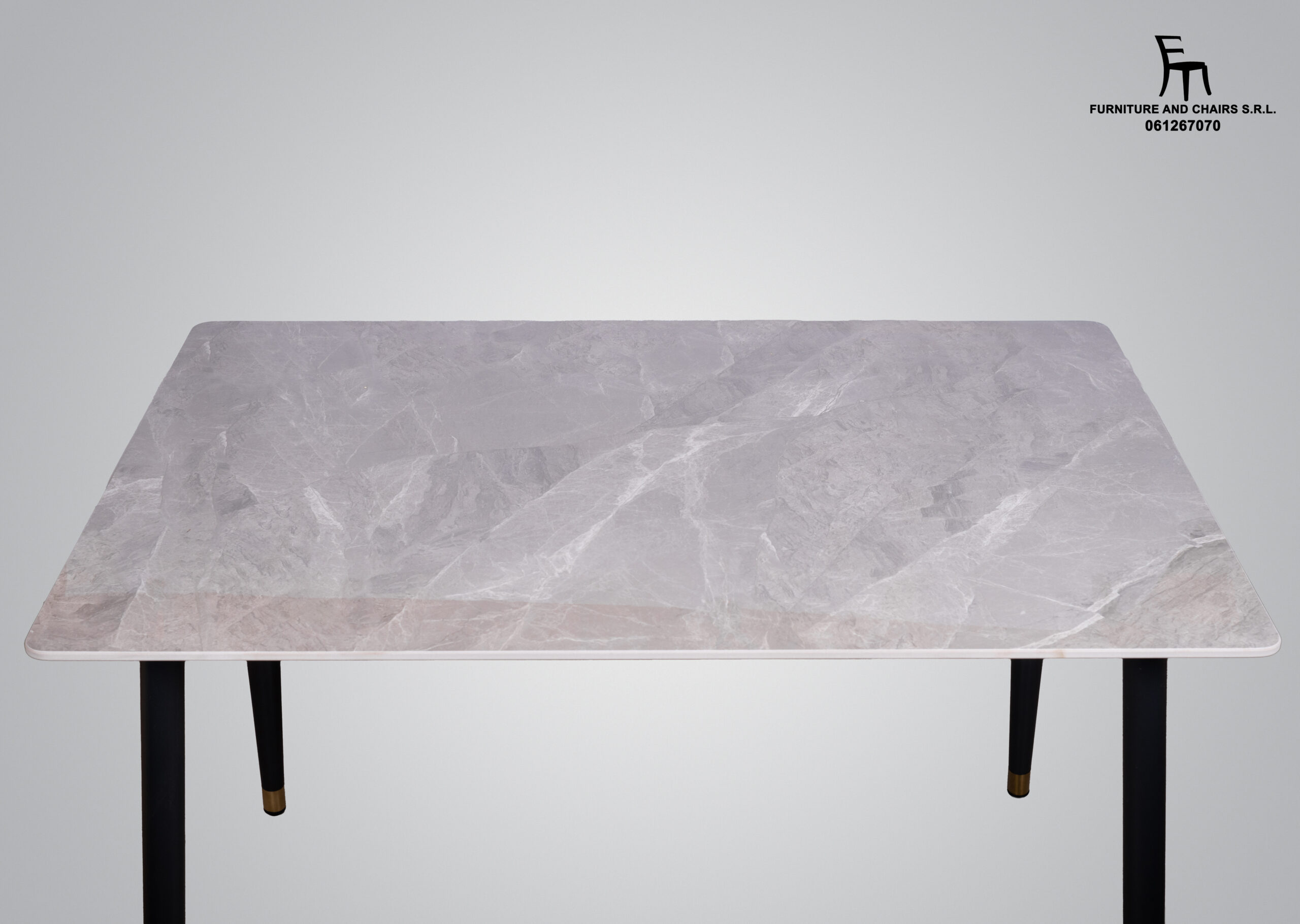 Dimensiuni masă: diametru 128 × 70/75 cm, blat din piatră, cadru metalic